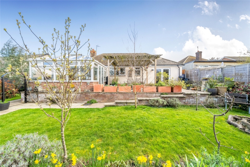 A two double bedroom detached bungalow with a garage, an EV charger, and off street parking for four cars, situated in the village of Bozeat.