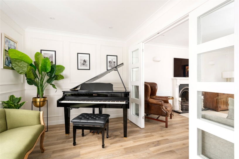 The accommodation includes an L-shaped sitting room with bi-fold doors to the rear garden, a snug/music room, and a cloakroom. Also on the ground floor is an open plan modern kitchen/dining room with a central breakfast bar, and an opening to the family room which has bi-fold doors to the rear garden. On the first floor there is a principal bedroom with an en suite shower room, three further bedrooms, and a main shower room. There is a landscaped rear garden, and off street parking to the front. The property is unfurnished and available at the end of March 2026.