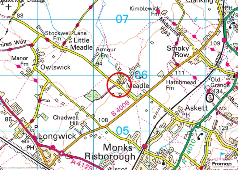 Meadle is situated approximately 2.5 miles from the market town of Princes Risborough which has a variety of shops, supermarkets, boutiques, restaurants, GP and dental surgeries, a sports centre and a railway station with services to Marylebone, Oxford and Birmingham.