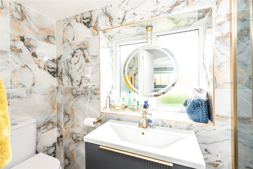 Built in the 1950s and set back from the road, the property has been extended and updated by the current owners in the last three years. The boiler was replaced in 2023, the property has been re-wired and replumbed, and the loft is fully boarded. The front door opens to a hallway which has a three piece shower room and stairs to the first floor with understairs storage. The kitchen/dining room spans the rear of the property and flows into a family room which has a log burning stove. An extension to the side of the property created an over 21 ft. sitting room with French doors to the garden, and a home office. The first floor has four bedrooms and a family bathroom which has a bath with a shower over, and a modern vanity unit with an inset wash basin and WC. The principal bedroom overlooks the garden and has panelled walls and an en suite shower room with a vanity wash basin, a WC, and a demisting mirror. There are three further bedrooms, two of which have built-in wardrobes.