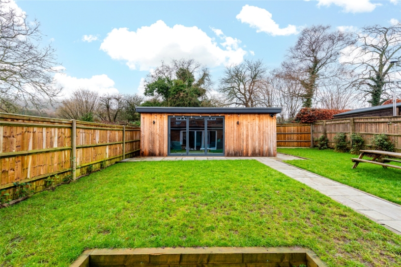The garden room was installed approximately 2 years ago and has a reception room with wood effect flooring, and bi-fold doors which open to the rear garden. Doors lead to a kitchenette and a shower room. There is a connected wooden store at the rear of the garden room. The vendor has told us that the studio was built under permitted development rules.