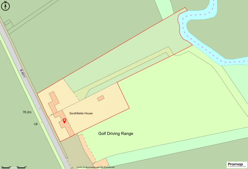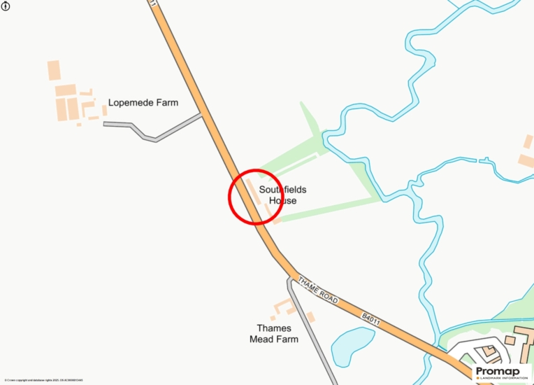 Paving outside the rear of the kitchen and utility areas passes the snug French windows and drawing room bay window. It continues as a path through an arch with double doors, opening to a passage that leads to a similar arched door in the front. A stone wall separates a paved patio at the rear of The Cottage. A path continues past the rear of the double garage (with an external tap). The rest of the garden is laid to lawn on two levels, there is a ha-ha and stone steps with flanking clipped yew hedges, and a pond. The lawn slopes down to a fenced boundary at the end with open farmland beyond. The fenced boundary on the right is with a neighbouring golf course. On the left of the lawn is established woodland with a lime tree walk which descends to a natural boundary at the far end formed by the River Thame. (The woodland provides a natural wild habitat and a supply of wood for the open fires in the house.) The boundary with the neighbouring farm on the left is farm fencing.