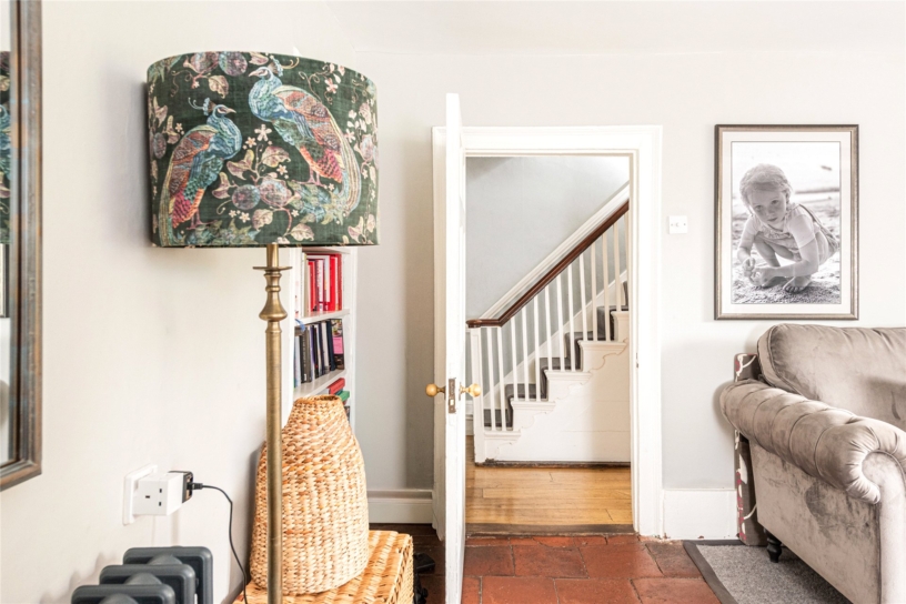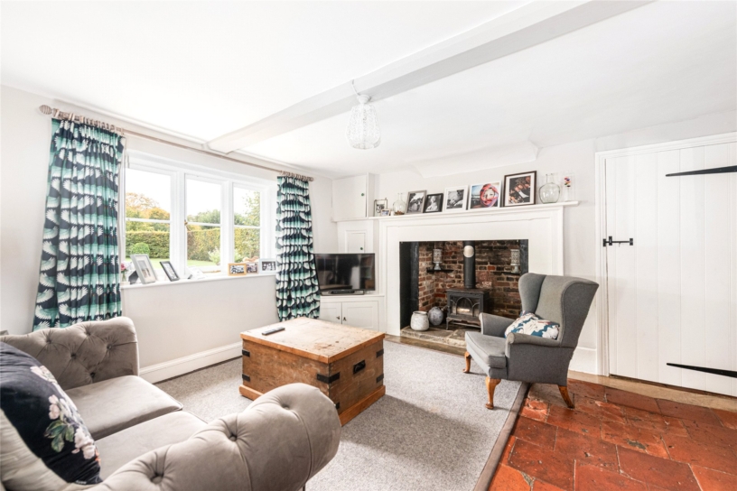 The TV room was originally the kitchen of one of the cottages and retains the quarry tiled flooring. There is a wide window overlooking the rear garden, a large fireplace with a log burning stove, and a range of built- in storage cupboards in one corner. Steps up from the TV room lead to the second cottage and the current family room which was originally a cottage kitchen. It has sash windows to the rear, and an opening to the snug which has a part sloping ceiling and a sash window to the front. This room could alternatively be used as a study for working from home if required. A former pantry adjoining the snug has been converted by the vendors into a second cloakroom.