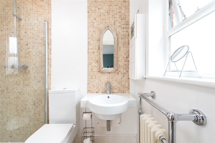 Painted stairs with a runner and brass carpet rods rise from the hall to the first floor landing. The double aspect principal bedroom has a walk-in box bay window overlooking the rear garden and a three piece en en suite shower room. There are three further double bedrooms, two with feature fireplaces, and an airing cupboard. The four piece family bathroom has a claw foot freestanding bath, a walk-in shower, and a traditional high level cistern WC with a matching basin.