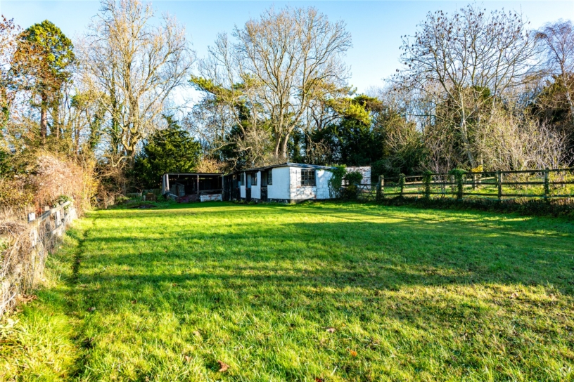 Behind a five-bar gate at the front of the house, a gravelled driveway offers parking for several cars and there is a flanking lawn with low clipped hedging and shrub borders. Gated vehicular access to the side of the house leads to the tandem garage with a mechanic’s pit and light and power connected. At the rear of the house is a patio and the garden which is mainly laid to lawn, with shrub borders and a herb garden. A further vehicular gate leads to the level, hedged and fenced paddock with three stables and an over 29 ft. by over 24 ft. storage barn.