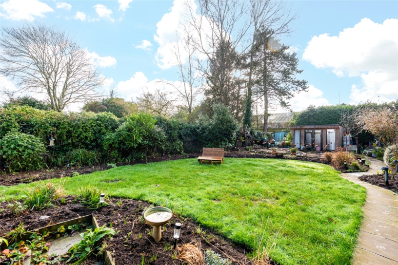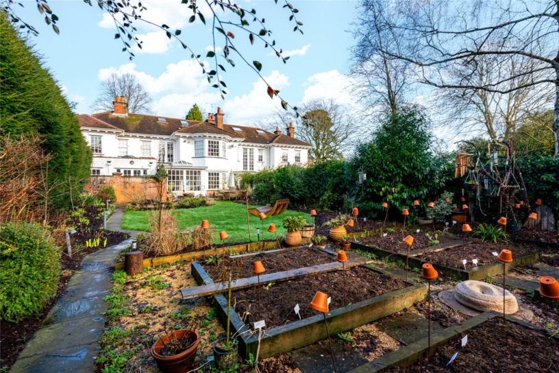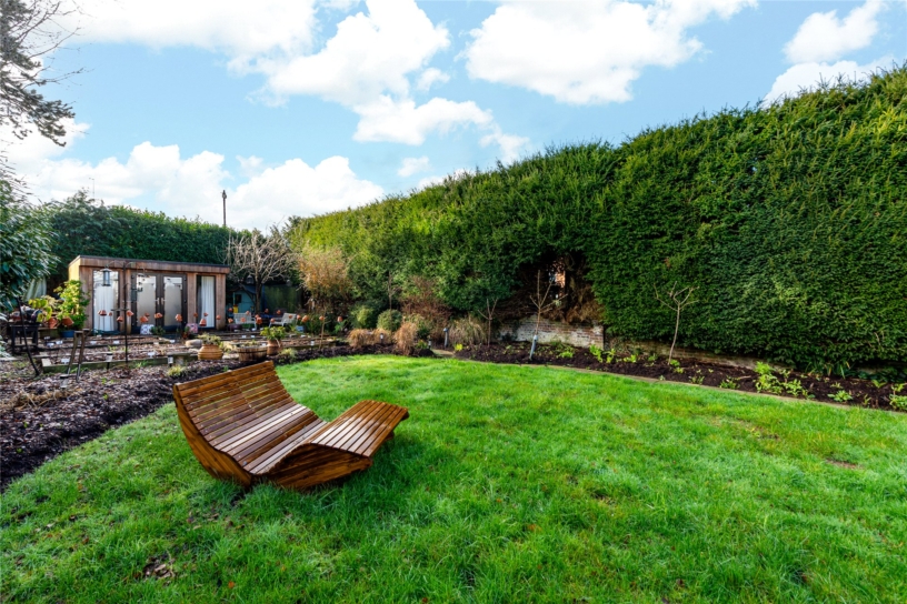 A period mid-terrace four bedroom house, with a separate home gym and a garden office, with gated driveway parking and a south facing rear garden, overlooking the village green in the village of Penn.