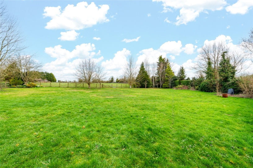 Approached over a shared driveway, there is a private drive offering parking for up to five cars with shrub borders and a double garage with electric doors. A side gate leads to the rear and side gardens which have areas of lawn and include paved patios with shrub and flower borders and two garden stores. A post and rail fence with a five-bar gate separates the paddock from the garden. The paddock is approximately 2.6 acres with separate gated access to the village road.