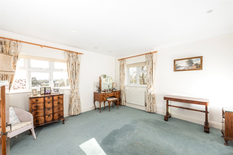 The landing has an arched window overlooking the front drive and a built-in airing cupboard. The over 13 ft. square principal bedroom is double aspect and has a dressing room with built-in wardrobes and a five piece en suite bath/shower room with a separate shower cubicle. The three remaining bedrooms are all double in size with fitted wardrobes and views over the garden or paddock. The family bath/shower room also has a separate shower cubicle.