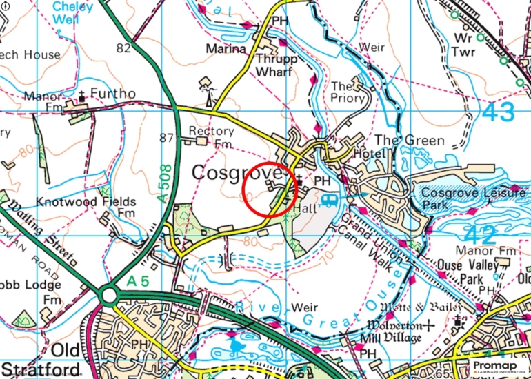 Cosgrove is a village in south Northamptonshire approximately 7 miles from Milton Keynes and with access to the A508 and the A5. The village has The Barley Mow public house and restaurant and Cosgrove Park which has a shop open from April until the end of October. Cosgrove Village Primary School has pupils from age 4 to 11 years and is catchment for the Elizabeth Woodville School for secondary education. The village is also convenient for the Royal Latin Grammar School and Akeley Wood School.