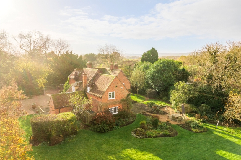 A Grade II listed 1930s property, part of a converted country house, with four/five bedrooms, four bathrooms, a courtyard garden, terrace and parking, in need of some modernisation and for sale with no upper chain.