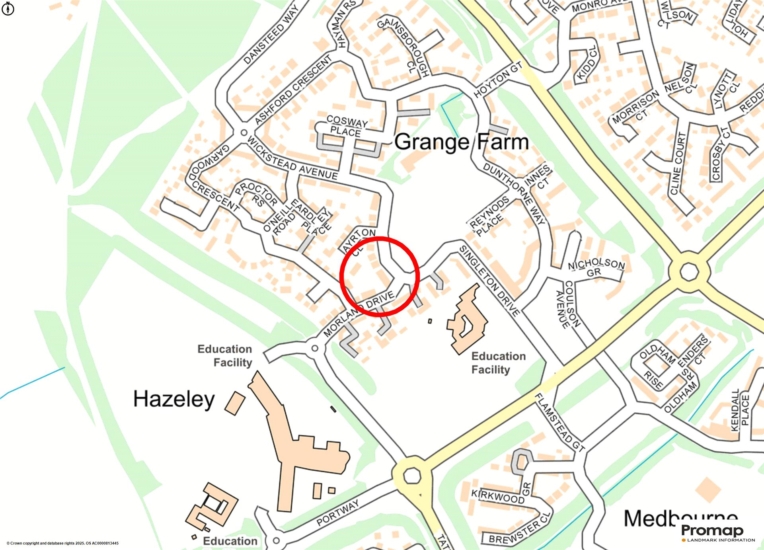 Grange Farm is on the west side of Milton Keynes and has a local centre with a Co-Operative food market, a dental practice, and a selection of takeaway restaurants. Local schools include Christ the Sower Ecumenical Primary School and Hazeley Academy which takes students from 11 to 19 years.