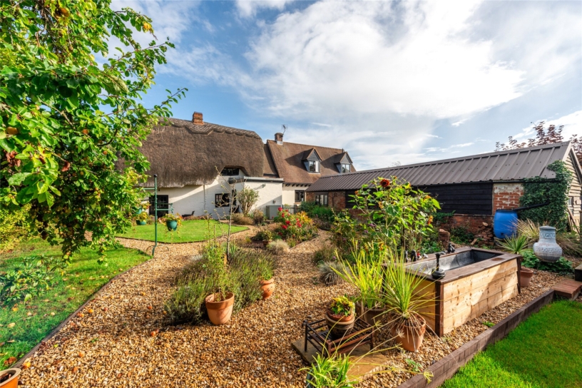 The cottage and annexe together provide approximately 2,745 sq. ft. of accommodation. On the ground floor of the cottage there is an entrance hall with a full turn staircase to the first floor and access to the dual aspect dining room and kitchen. The dual aspect sitting room has an inglenook fireplace, access to an under stairs storage cupboard and a door to a shower room. The adjoining snug has a fireplace, French doors to the garden, and a second staircase to the first floor which has four bedrooms and a bathroom. The block paved yard has gated access and provides parking for up to ten cars. This area is surrounded by lawned areas and there is a picket fence to a further lawned garden with mature trees, shrubs, and a gazebo. There are further garden areas with lawns and planted beds, a greenhouse, a summerhouse, and a patio at the rear of the property.