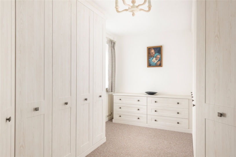The property has 1,271 sq. ft. of accommodation which includes an entrance hall with a cloak cupboard and storage cupboard. The just over 16 ft sitting room has a bay window to the front and an opening to the dining room. There is also a kitchen/breakfast room and a dual aspect garden room which has sliding doors and French doors to the garden. The principal bedroom overlooks the rear garden, has fitted wardrobes and an en suite shower room. Bedroom two has fitted wardrobes and a door to the garden, and bedroom three is currently being used as a dressing room and is fitted with a range of wardrobes along two walls. There is a three piece bathroom which has a WC and washbasin set into a vanity unit and a bath with a shower over.
