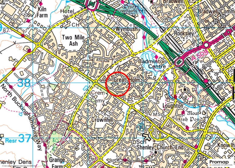 Great Holm is principally a residential district and includes a high point overlooking much of the central area of Milton Keynes. The MacIntyre charity runs a coffee shop and bakery which is open to the public. There is also a newsagent, a pharmacy, a community centre and walks around Lodge Lake. Ashbrook School and Loughton Manor School offer primary education. The property is also in the catchment area for Denbigh School at Shenley Church End which takes pupils from 11 to 18 years of age.