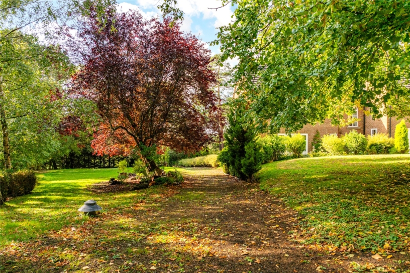 A gated entrance in a stone wall leads to the property with driveway parking for comfortably ten cars in addition to the integral double garage. The side driveway leads to a workshop/quadruple garage at the rear. There are mature trees surrounding most of the plot, as well as lawned gardens and a 'kitchen' garden with raised beds, a potting shed, and a greenhouse. Adjacent to the house are seating areas and mature borders.