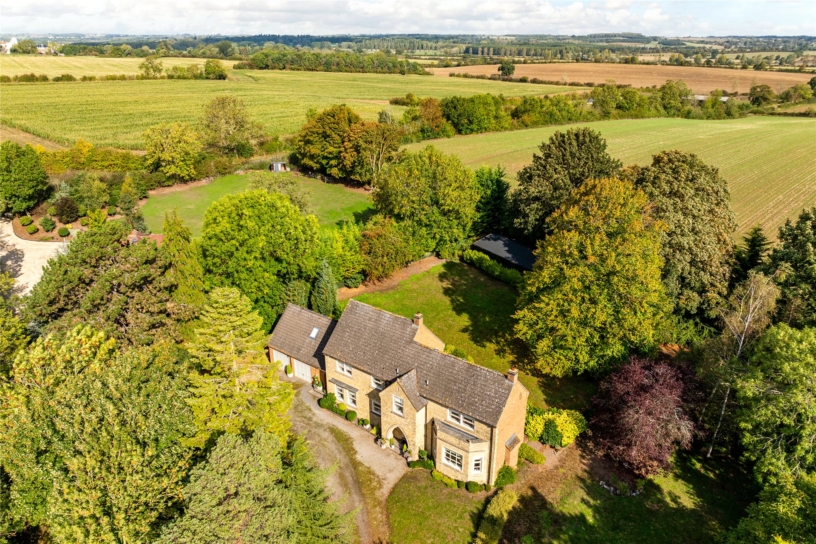 A four bedroom detached property with a driveway, an integral double garage and a separate quadruple garage/workshop standing in an elevated position on a plot extending to 0.87 acres with established wraparound gardens backing onto open countryside.
