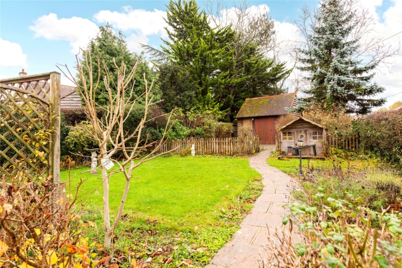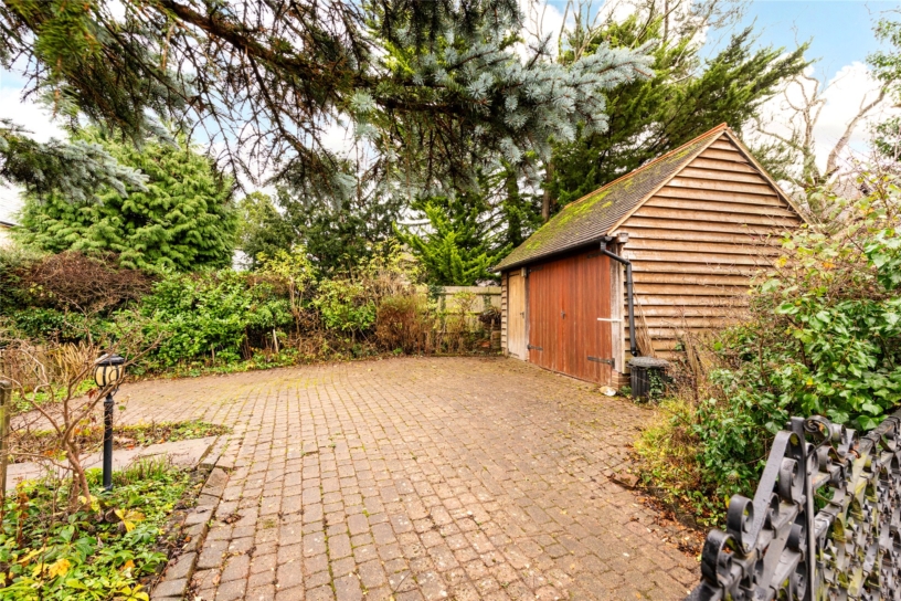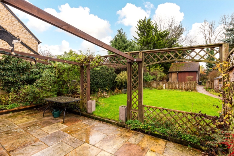 The sitting room was formerly two rooms and has an open fireplace at one end with a gas stove and fitted units on either side and a feature former fireplace at the opposite end. A vaulted oak framed garden room leads off and has French doors to the patio and garden. The study has a door to the driveway and fitted units with storage and a workstation. The dual aspect open plan kitchen/dining room has a range of base and wall units, an electric hob, a dual cook electric oven, an integrated dishwasher and space for a ten seater dining table.