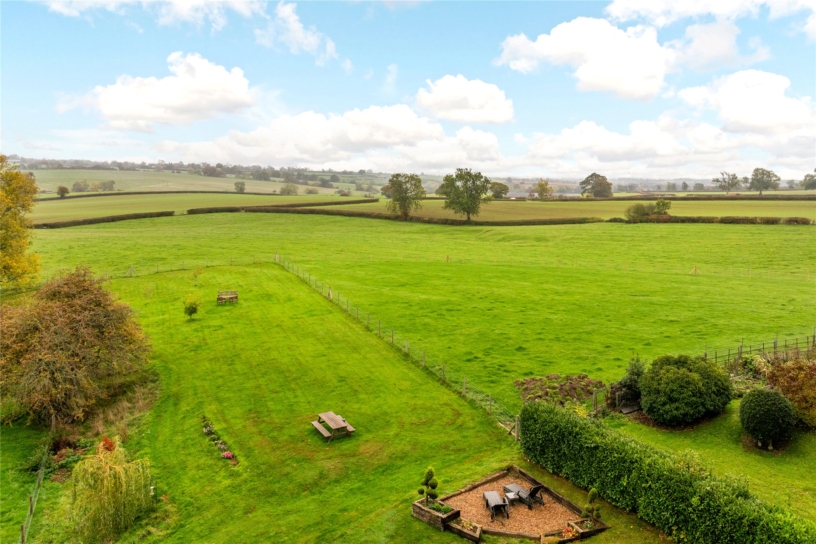 The property extends to 0.66 acres in total with a gravelled driveway at the front with parking for up to six cars in addition to the integral double garage which has an electric door. There is gated access on either side and areas of lawned garden and paved and gravelled seating areas. There is area of fenced paddock that is open to the garden and has views over open fields. At the side of the property there is an octagonal wooden greenhouse, a garden shed and the air source heat pump unit.
