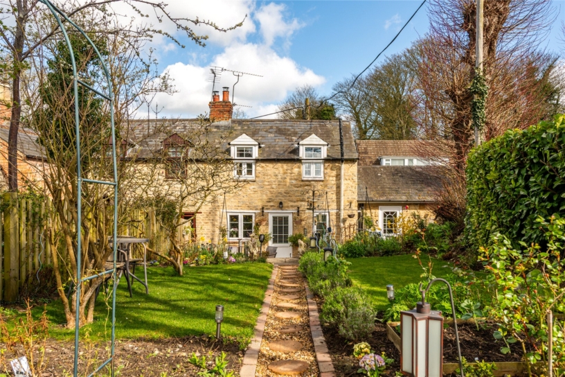 A period stone under slate two bedroom end of terrace cottage with off street parking and gardens backing onto a paddock with views over the conservation village.