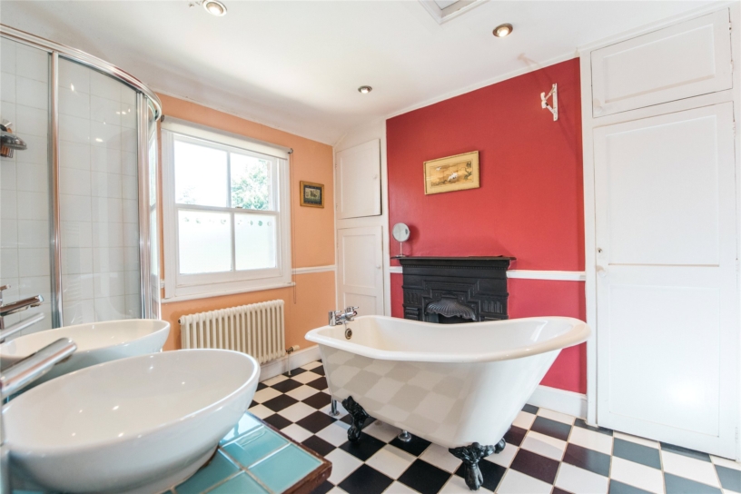 The dual aspect kitchen/dining room measures over 25 ft. long and has double doors to the patio in the rear garden for outside dining. The kitchen has been refitted with a range of white fronted wall and base units with granite work surfaces and an inset stainless steel sink. Bosch appliances include a stainless steel oven, a four ring hob and an extractor, and there are spaces for a fridge/freezer and a dishwasher.