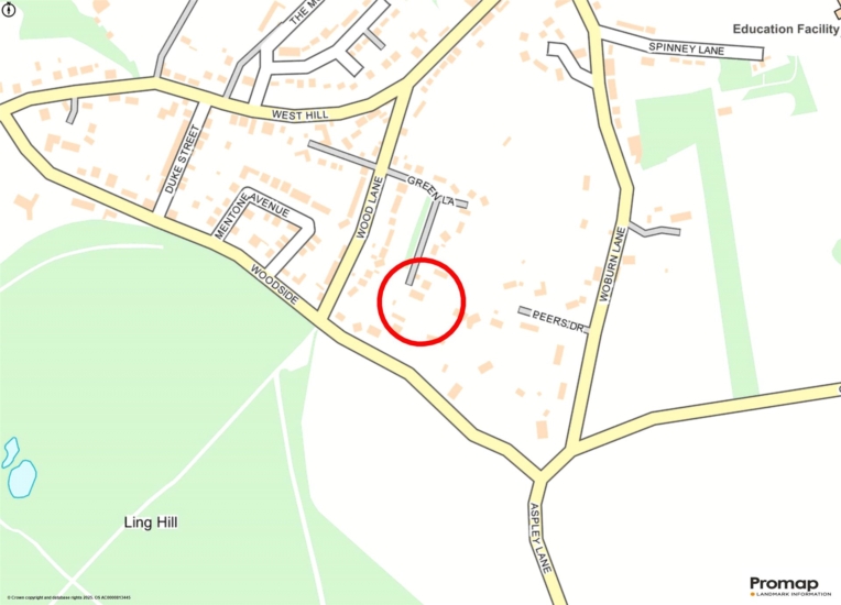 From Green Lane, Greenacre is approached via a herringbone block paved drive that approaches the front of the house, providing ample off street parking and leading to gated side access to the rear garden. Raised brickwork separates the driveway from a curved lawn at the front of the house which slopes slightly up and is enclosed by a variety of shrubs and clipped hedges, including mahonia and yew, with a backdrop of established trees – horse chestnut and beech. The undergrowth conceals two connected garden sheds. The effect created is rural and secluded.
