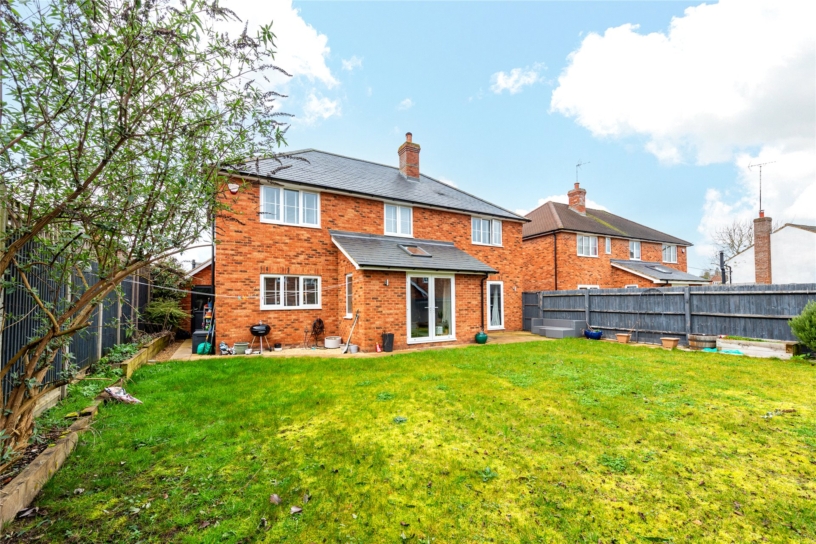 A modern four bedroom detached property with driveway parking, a double garage, and an enclosed easterly facing rear garden, in a cul-de-sac of similar properties in the Buckinghamshire village of Stoke Hammond.